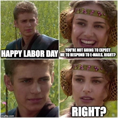 Just checked and I responded to 72 e-mails on Labor Day…FML…